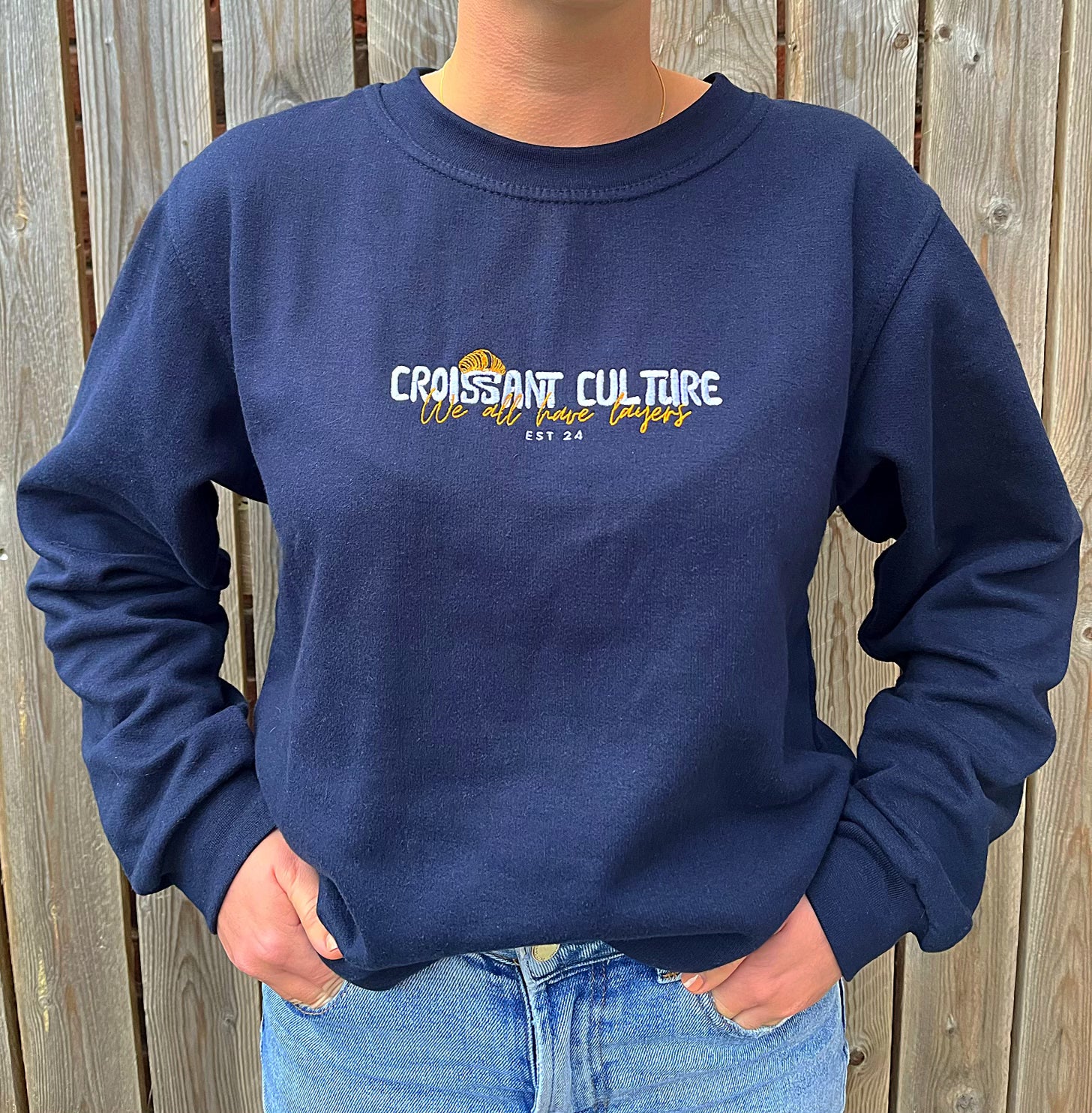 Classic logo on a navy sweatshirt. Perfect casual attire to show off your layers!